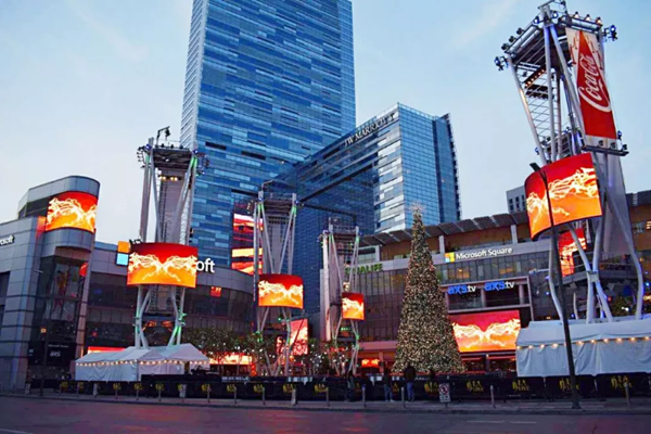三思(si)3500平(ping)方米戶(hu)外LED屏在美(mei)國西(xi)岸再造一(yi)箇“時