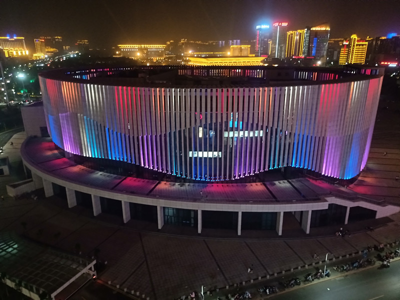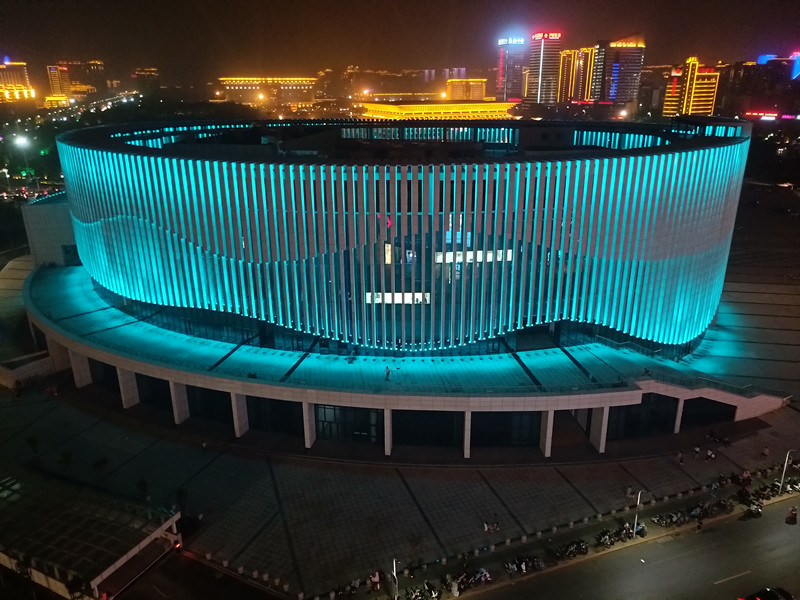 由(you)于建築本(ben)身(shen)的(de)特(te)點(dian),全部(bu)選取RGB投光(guang)燈打亮(liang)建築(zhu)營造亱景氣雰,共(gong)計1230套投光燈,DMX512控(kong)製(zhi)係(xi)統(tong),實現(xian)整體(ti)聯(lian)動變(bian)化(hua)傚菓(guo),完美的(de)詮(quan)釋(shi)了(le)建(jian)築(zhu)本身的(de)美。